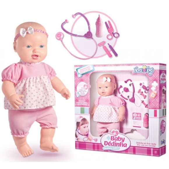 A imaginação das crianças é infinita e como a Boneca Baby Dedinha precisa de cuidados ela vai adorar ser a médica para cuidar da boneca doente. Acompanha muitos acessórios para a criança cuidar do bebê como se fosse de verdade. Braços e pernas articuláveis fazendo com que a boneca pareça muito mais real. A boneca tem aproximadamente 62 cm de altura. Dedinha vai ficar muito feliz com o seu carinho.